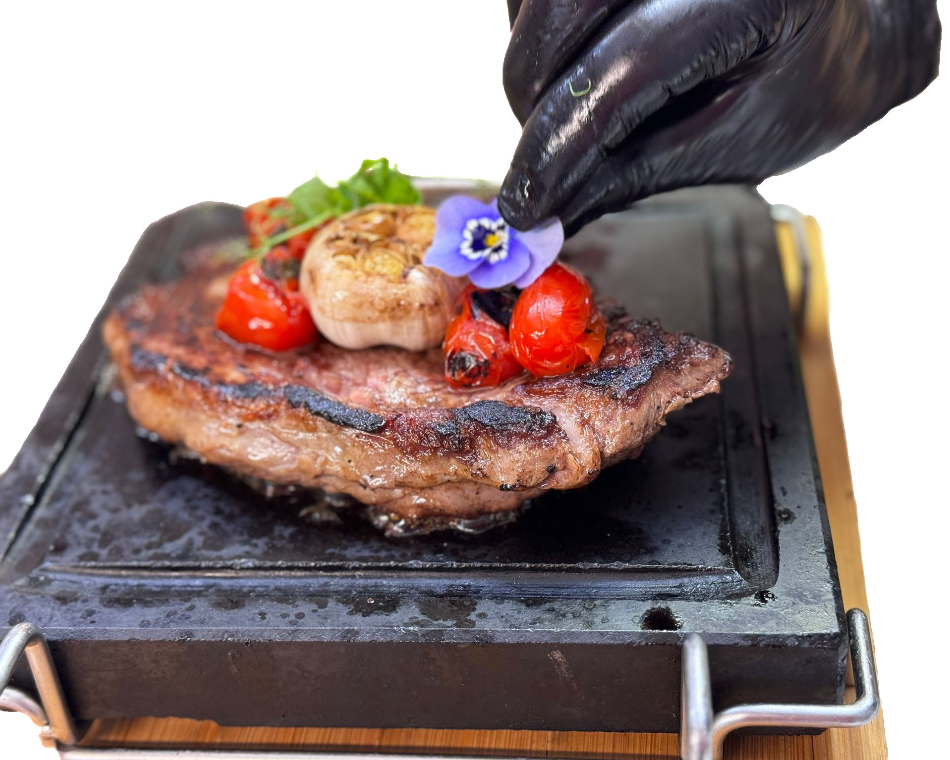 Muschi de vita cu cartofi piure, sos de piper verde si ceapa coapta 220g/200g/50g