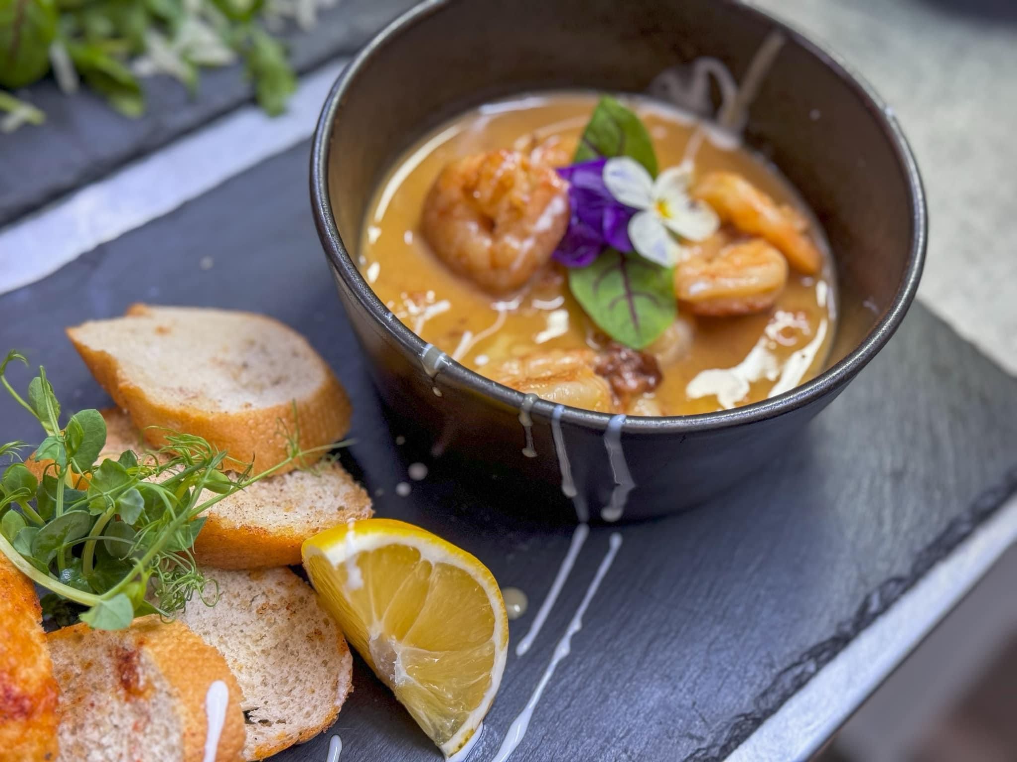 Creveti, unt, lamaie, condimente, vin