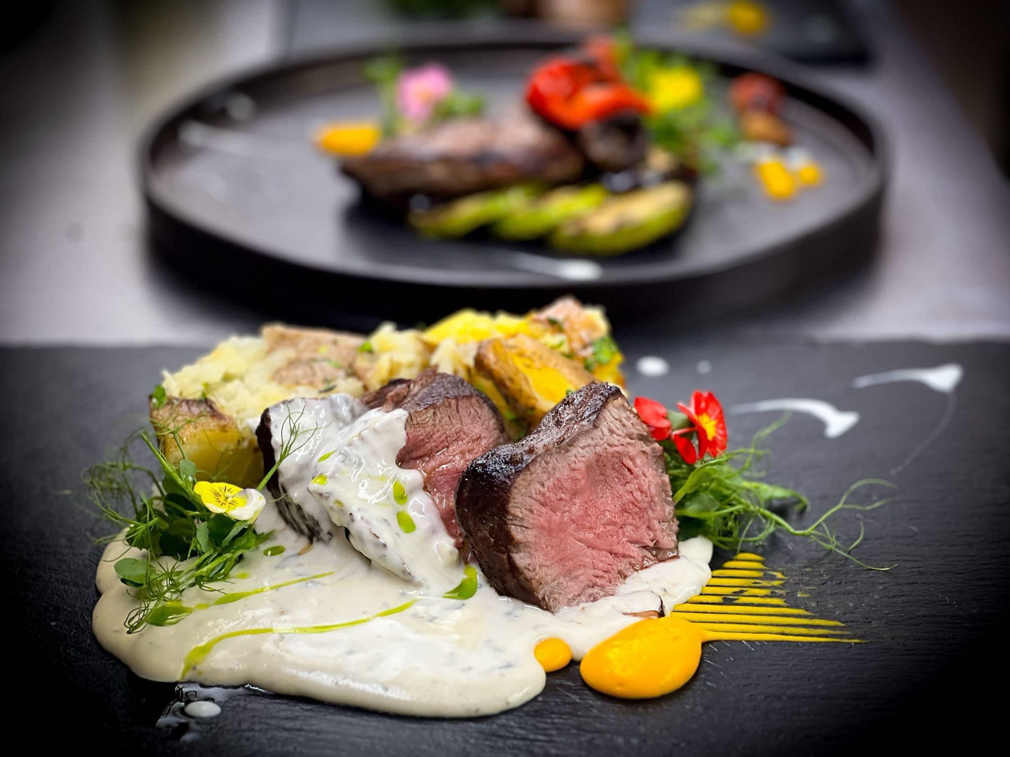 Muschi de vita cu cartofi zdrobiti si sos gorgonzola 220/200g/50g